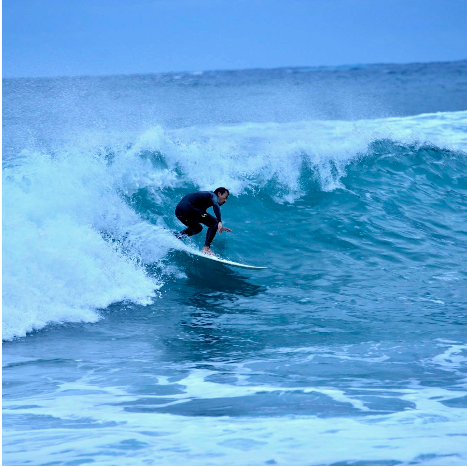 地元宮崎では、マリンスポーツが盛んに行われており、13歳の頃にサーフィンというものに出会い、自然が生み出す「波」に乗るという感覚に魅了され、中学から高校までの生活は学校前学校後と毎日海に行くライフスタイルを送っていました。