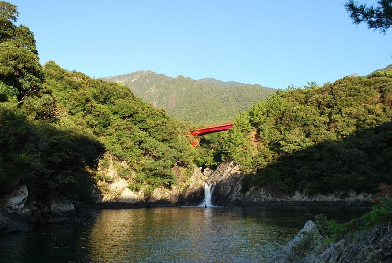 そこには岩肌が隆起するような屋久島ならではの大滝が現れ、圧倒的な迫力の風景が広がります。