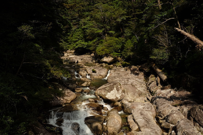 この登山コースのスタートは、ヤクスギランドの入り口から始まります。澄んだ川の流れと巨木が並ぶ森を抜けて進むと、やがて「天文の森」にたどり着きます。ここは、苔むした森と巨木の世界が広がる、ガイドさんたちにも人気のエリアです。多くの登山者が訪れるメインルートから外れているため、ここでは静かな森を楽しむことができ、屋久島の自然をより深く感じられるのが魅力です。